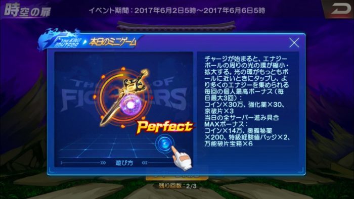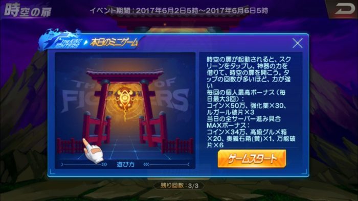 この記事では「キングオブファイターズ’98 アルティメットマッチ オンライン」(KOF’98 UM OL)で開催される「時空の扉」のミニゲームと報酬をまとめています。