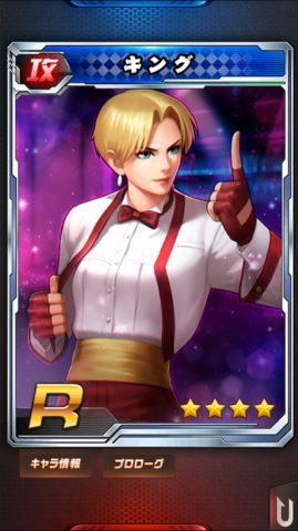 「キングオブファイターズ’98 アルティメットマッチ オンライン」(KOF’98 UM OL)の「キング」のステータス(スキル/宿命/闘志)を紹介しています。