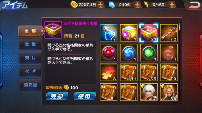 女性格闘家破片宝箱の開封結果をまとめてみました。