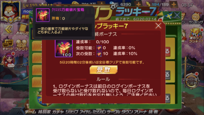 最終日に最終ボーナスのワールドカップ万能破片宝箱を受け取るのをお忘れなく!!(アプリではクリスマス万能破片宝箱になってます)