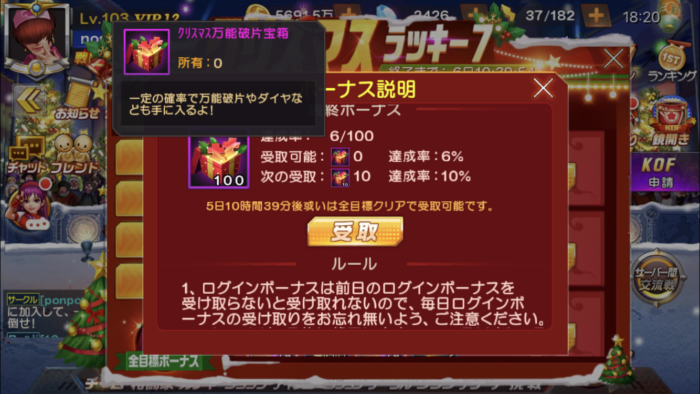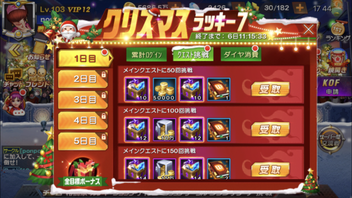 最終日に最終ボーナスのクリスマス万能破片宝箱を受け取るのをお忘れなく!!