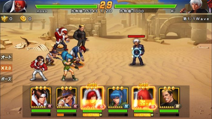 四魂とダメージ減少のBUFFでK’の最初のヒートドライブを耐えて、後は怒りを下げながら倒しきるまで攻撃力のBUFFを上げました。