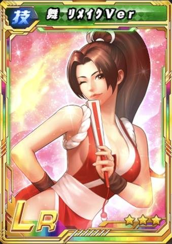 | パッシブスキル2 | 鳳凰の舞 自身の怒り回復速度が増加する。 舞リメイクVerが登場する時、味方(ストライカーを含まない)に女性格闘家が1人いる毎に、自身の必殺技ダメージが4%増加する(本戦闘中、ずっと継続する)。 舞リメイクVerのすべての攻撃がターゲットに火傷効果(2ターンの間、毎ターン舞リメイクVerの攻撃力の100%分のダメージを与える。この火傷によるダメージは怒りが回復しない)を付与するようになる。 舞リメイクVerが必殺技を発動するたびに、自身の攻撃力と防御力が5%増加(最大で15%まで増加)する。 自身の怒り回復速度が20%増加する(Lv:?%) |