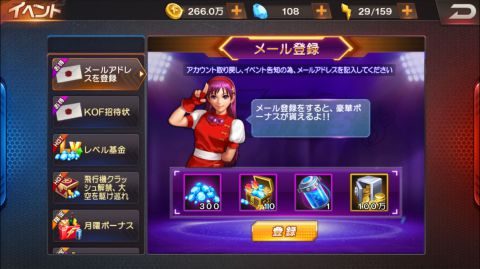 1/23(月)11:00~12:00のメンテナンス以降にメールアドレス登録で報酬がもらえる機能が追加されています。