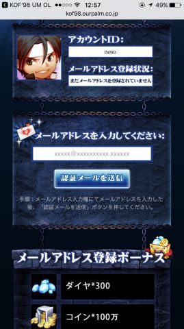 この記事では「キングオブファイターズ’98 アルティメットマッチ オンライン」(KOF’98 UM OL)のメールアドレス登録について紹介しています。