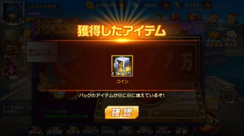 回数を重ねる毎に必要なコインが増えるので、増える分を見込みながらも予め余裕をもって一気に最後まで招くことをおすすめします。