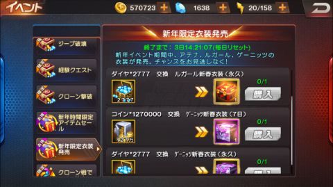 ルガールとゲーニッツの新衣装はイベントの「新年限定衣装発売」で購入可能です。