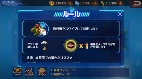 内容は飛行機をスワイプで操作するシューティングゲームで、縦持ちでのプレイがオススメです。