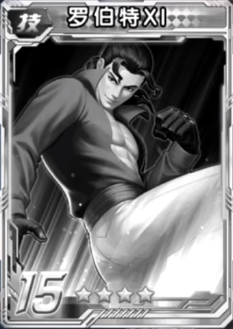 | スキル攻撃 | 幻影脚 敵単体(「賞金首」を優先)に無数の蹴りでダメージを与え、ターゲットの攻撃力、防御力、怒り回復速度を20%減少させる。 「賞金首」を攻撃する時、当該格闘家のHPが50%未満の場合、ロバートXIの怒りを100回復し、1ターンの間、行動制限耐性が80%増加する。 敵単体に160%+15のダメージを与える(Lv:0.1% / +15) |