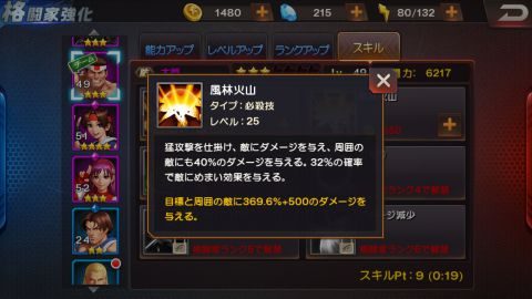 大門のスキル「地雷震」は14%の確率で、必殺技の「風林火山」は32%の確率で敵をめまい状態にすることができます。
