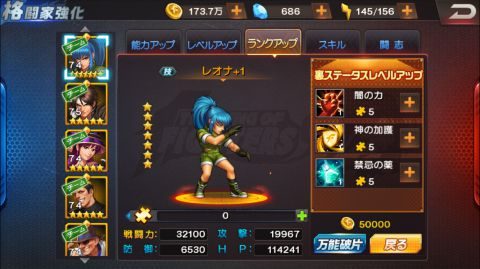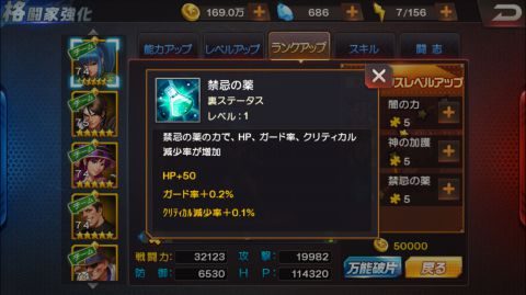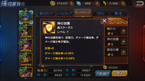 ▲キャラクターの破片5個で裏ステータスのレベルを上げることが出来ます。