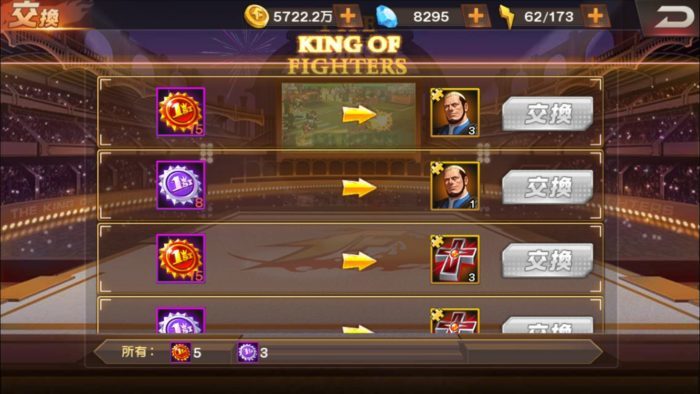 バッジはKOF大会サーバー戦の「交換」からUR攻格闘家の「ゲーニッツ」の破片や武器覚醒素材の破片と交換できます。
