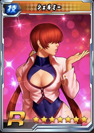 | シェルミーフラッシュ | 必殺技 | ジャーマンスープレックスで敵にダメージを与え、敵女性格闘家のBUFF効果を除去する。味方の女性格闘家の攻撃力を15%増加、状態異常効果を除去する。 |