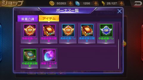 神器には種類があり、神器により上昇するパラメータが異なります。