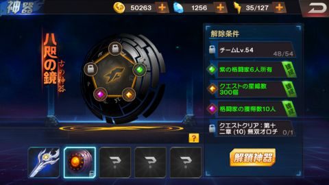 「神器」はチームレベル(プレイヤーレベル)46で開放される、コアなコンテンツです。
