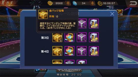 ▲KOF大会のバッジ宝箱から神器エネルギーを入手できます。