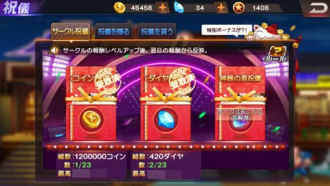 ▲神器のエネルギー源はサークル祝儀でも入手できます。