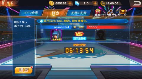 ▲「試合」のタブの「編成」ボタンから編成し直すことができます。