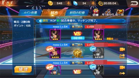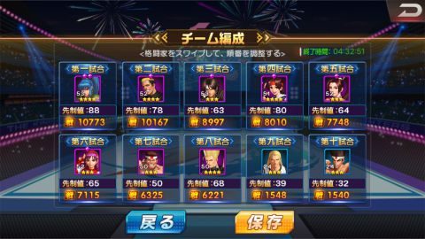 「THE KING OF FIGHTERS」では3回負けると脱落となるので、8強を目指すなら初めの方に主力を固めた方がよさそうです。