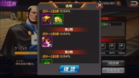 サークルボス討伐戦の「三回挑戦」はクエストの掃討と同じで、プレイすることなく、ダメージを与えて報酬がもらえました。
