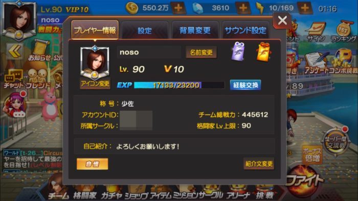 アンケート中に遊んでいるサーバー番号とIDが求められますが、IDはホーム画面左上のプレイヤー情報から確認できます。