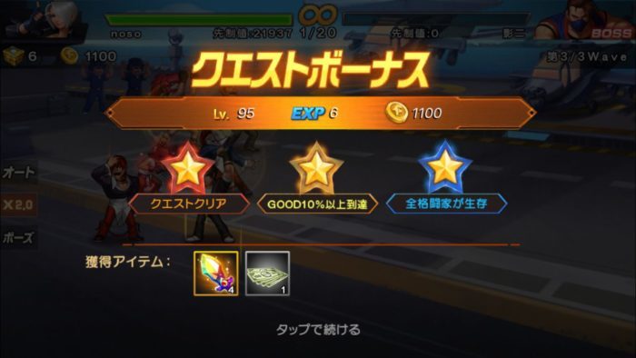 メインクエストの21章では未登場キャラの「パオ」が敵として登場したり、暴走庵、覚醒レオナ、ネスツ京などが敵として登場する手ごたえのあるステージになっています。