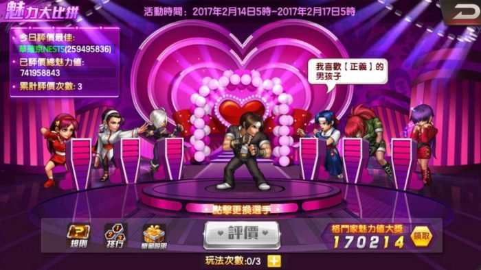 未成年格闘家:アテナ、真吾、レオナ、クリス、オロチクリス、香澄、クーラ、K’、アッシュ、ウィップ、アンヘル、覚醒レオナ、包、ナコルル