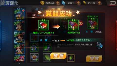 ▲装備は覚醒で性能が上がります。