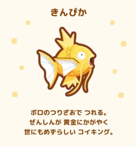 上位のつりざおほど釣れるコイキングの模様が増えていきます。