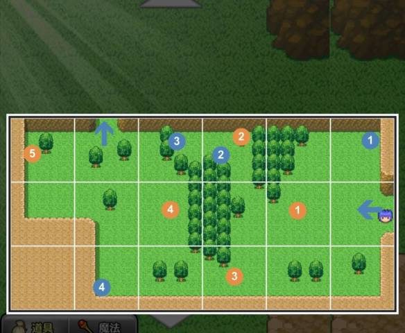 マップ中の番号は茶:敵、青:アイテムに対応します。