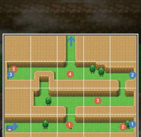 マップの黄色の①の場所にある岩を調べると、隠し通路が出現する。