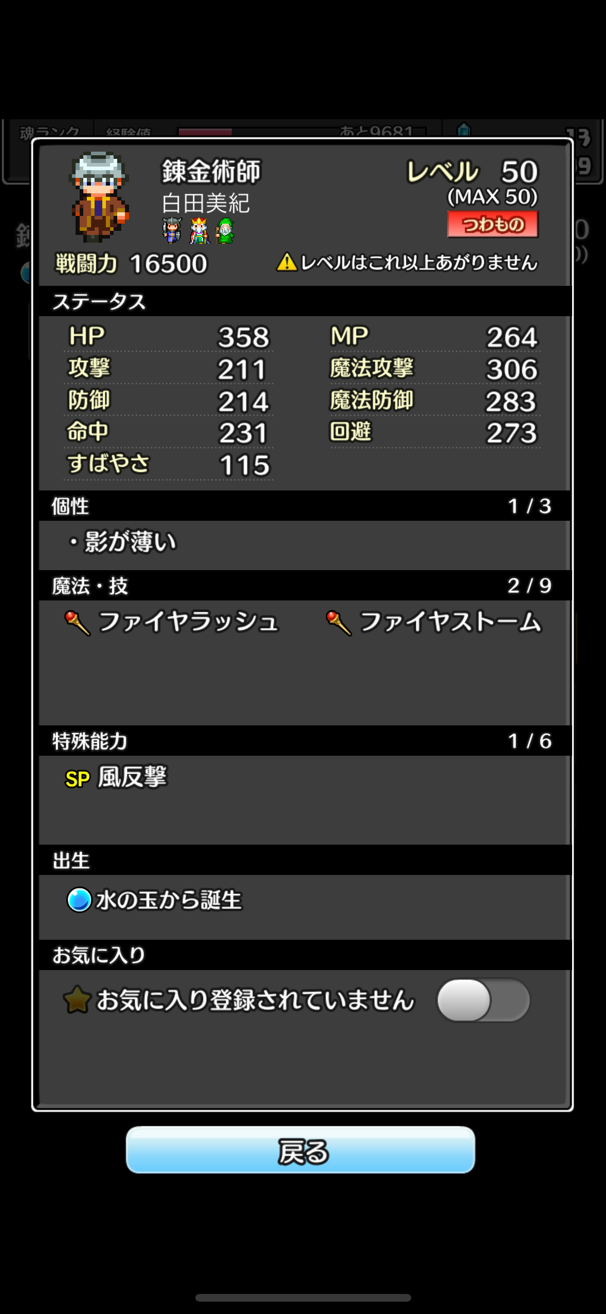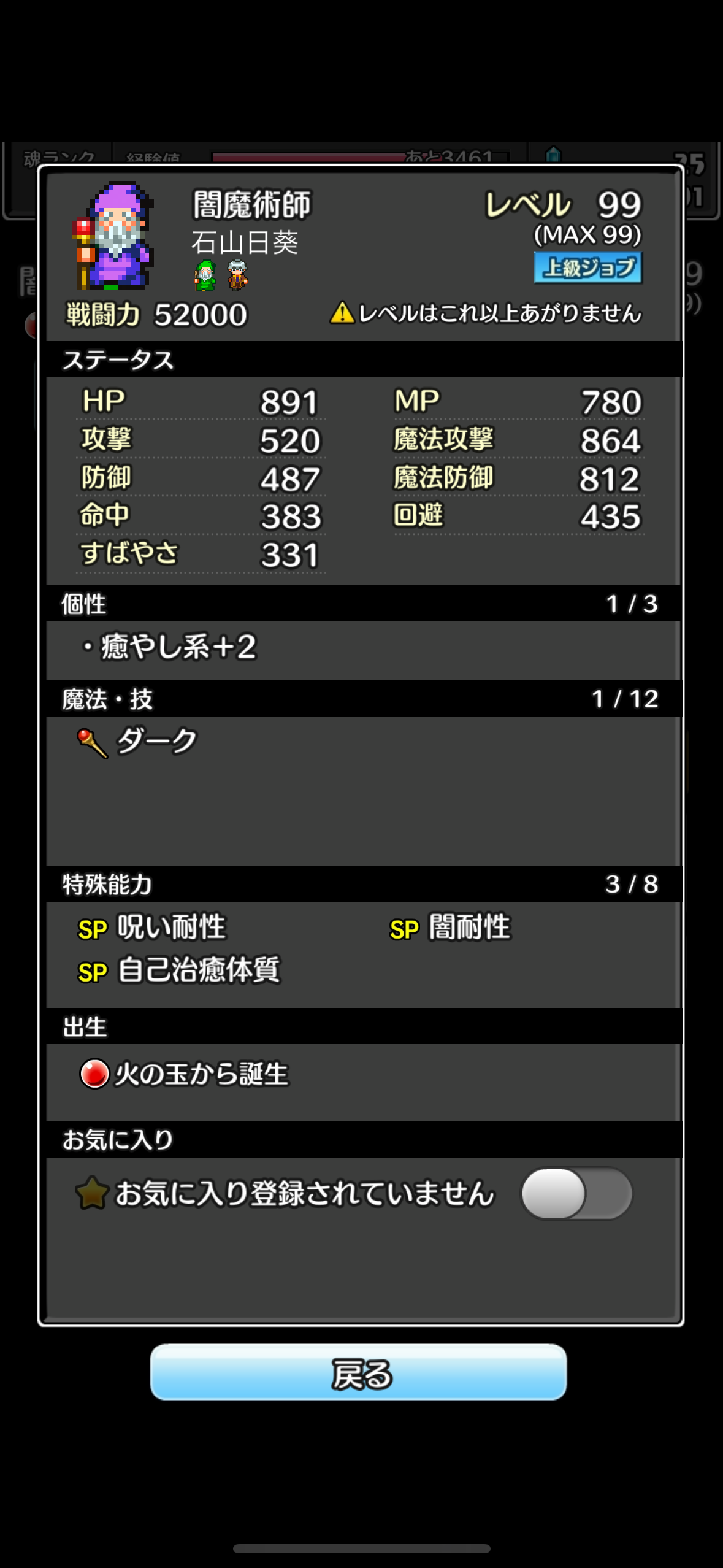 | 81:闇魔術師 | ゑ (火の玉) | メンタル強すぎ+1 | 王子、魔法使い、錬金術師 |