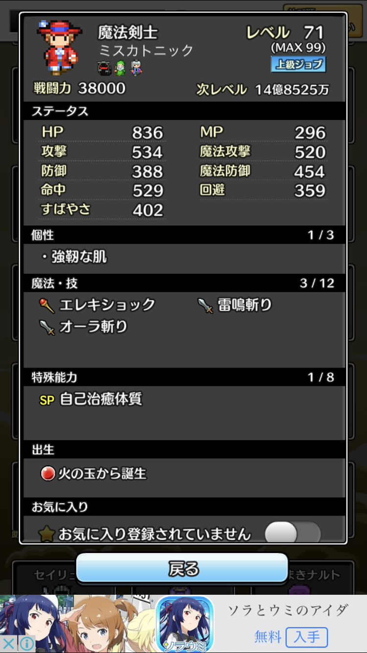 | 2:僧侶 | ナミ | レベルアッパー | 船乗り |