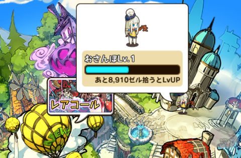 ▲おさんぽLvはゼルをもらうことで上がっていく。