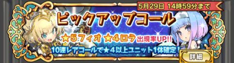 このピックアップコールでは、新ユニット☆5「フィオ」と☆4「ロラ」が追加されています^^
