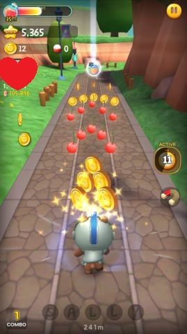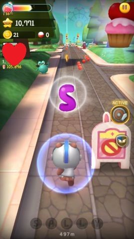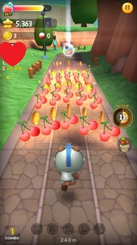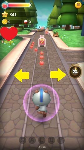 『LINE RUSH!』は、画面上を走るキャラクターを上下左右にフリックするだけの簡単操作で、障害物を避けたり敵を倒したりしながら、闇の力に支配されたサリーを追いかけるカンタン爽快ランゲーム!