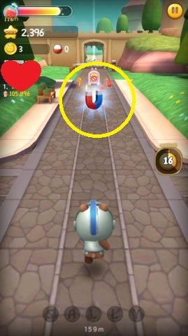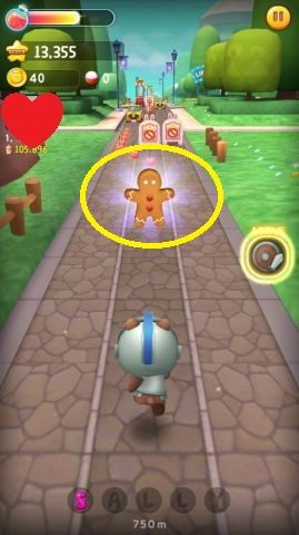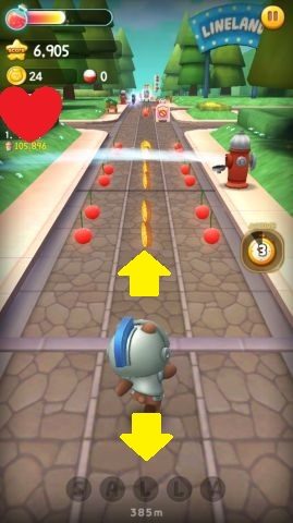 画面奥に走るキャラクターを、左右にフリックで移動させます。