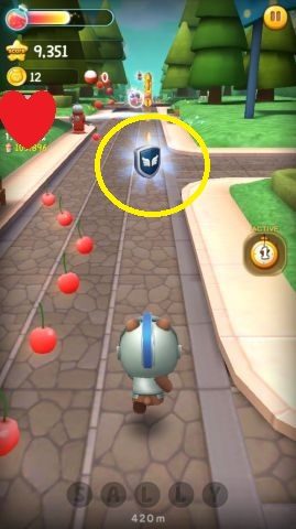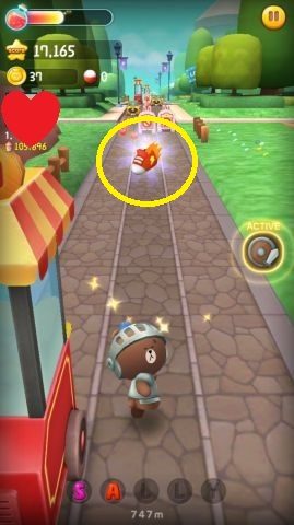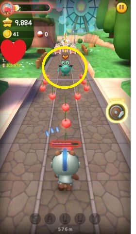 目の前に障害物が現れた時は、上フリックでジャンプ、下フリックでローリングのどちらかで避けることができます。