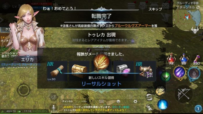 7つの転職クエストをクリアすると2種類の二次クラスから選択して転職出来るようになります。