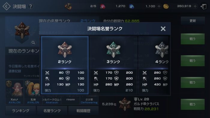 決闘では名誉ポイントを獲得することができ、一定の名誉ポイントになると「名誉ランク」が上がります。