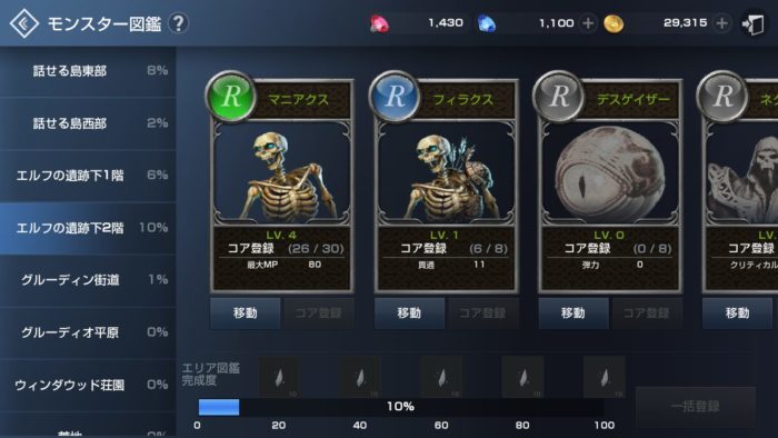 モンスター図鑑では登録されるモンスターにランクがあり、一度登録したモンスターでも追加でモンスターコアを登録することでランクが上がります。