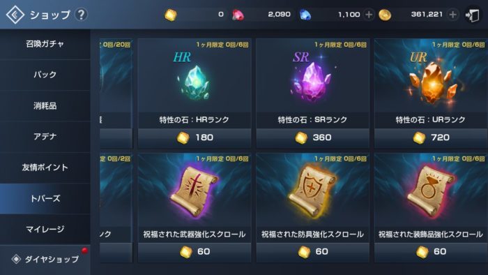 強化スクロールは常設機能では「曜日ダンジョン」、「マイレージ」からの入手を確認しています。