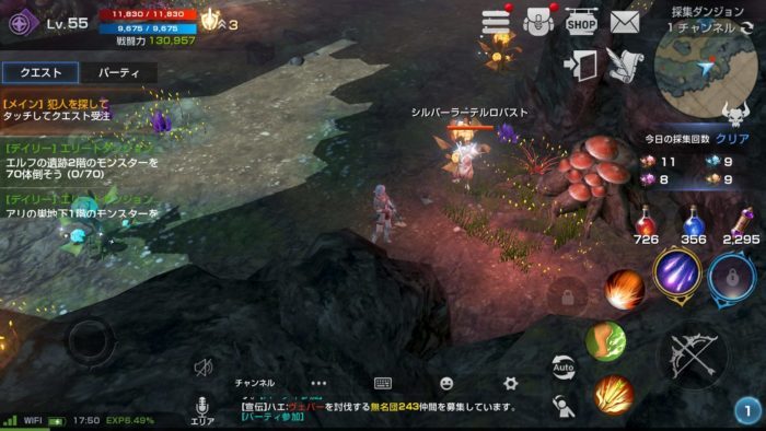 スマホアプリ「リネージュ2レボリューション」(リネレボ)の採集ダンジョンでの薬草集めについて解説しています。