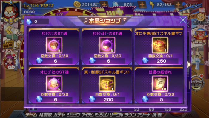 幸運の水晶は水晶ショップでSTスキル書やストライカー魂などと交換するためのアイテムです。