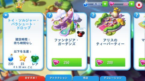 例えば「トイ・ソルジャー・パラシュート・ドロップ」では、4時間ごとに経験値やトークン、230のマジックが生産されます。