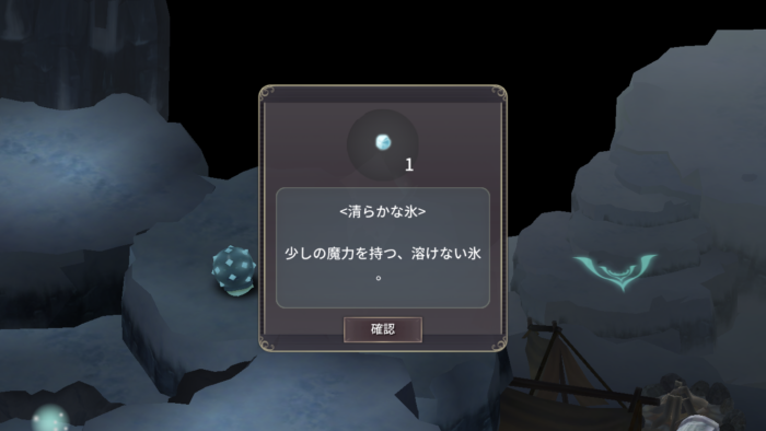 - 清らかな氷×3(氷の洞窟のフィールド上の素材)