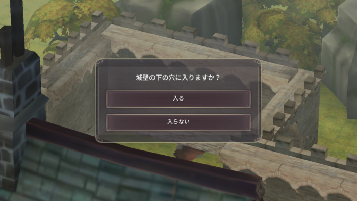 | 7 | 領主の自宅から外に出てアドリアンと会話。 アドリアンに隠れ家のことを伝えるか選択する。 「位置を説明する」と「それは言えない」どちらを選んだ場合も直後の展開で大きな変化はなく未確認。 |