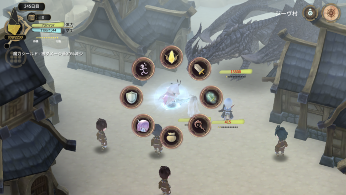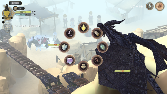 | 3 | リアート村に移動する。 村の中央に近寄るとイベントが発生し、アンシエントドラゴンとの戦闘に突入。 この戦闘では物理攻撃は届かないため、人形召喚、魔法、魔力剣術でダメージを与える。 |