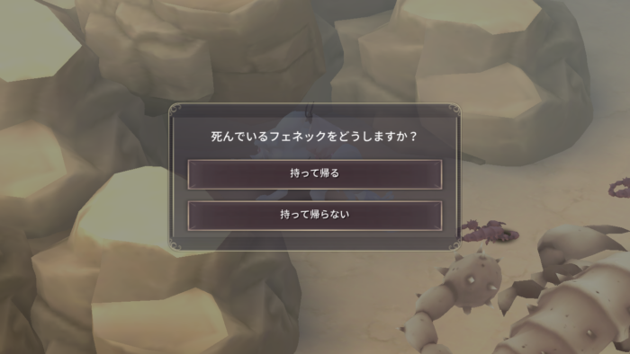 | 2 | 近くに倒れているフェネックを持って帰る。 |