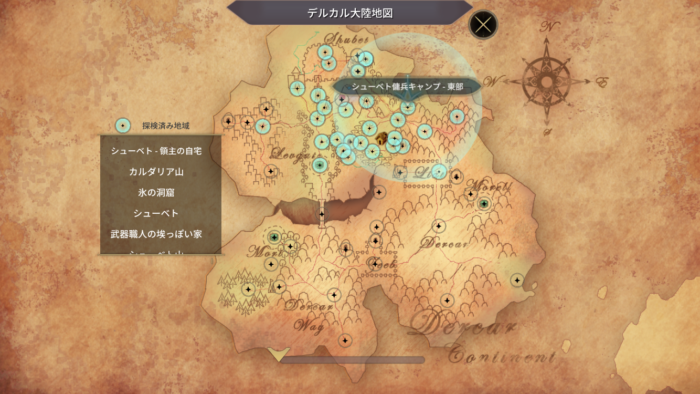 | 1 | リアート砂漠の南東からデルカル大陸東海岸に移動し、でブレッドに話しかける。 |